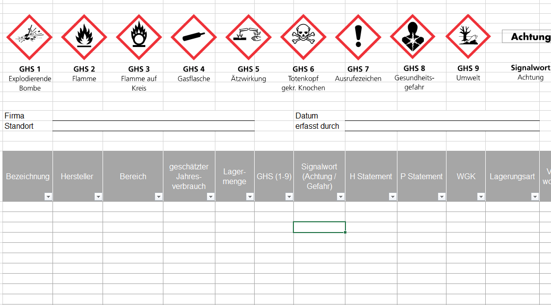 In der Vorlagendatei zur Erstellung von Gefährdungsbeurteilungen, im Buchungsbereich „Modulares-Aufbau-Support-Seminar – Gefährdungsbeurteilung“, sind die Vorlagen zur Erstellung von Arbeitsmittel- und Gefahrstoffkatastern bereits enthalten!